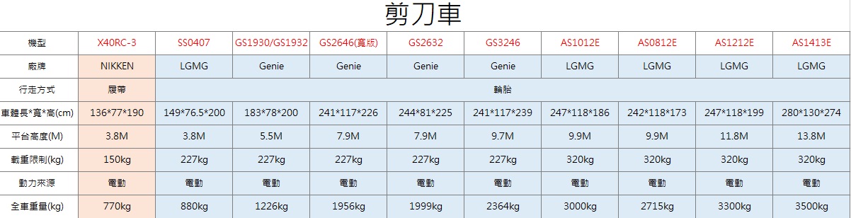 臨工剪刀車 4米、10米、12米、14米
